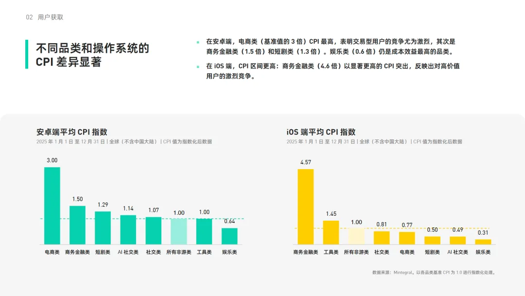 先看数据。报告显示,电商类投放应用数同比增长30%——听着挺热闹是吧?但再看另一组:安卓端CPI已经飙到区域基准的3倍。花1块钱能拉来的用户,现在得花3块。存量绞杀这四个字,算是让电商玩家吃透了。