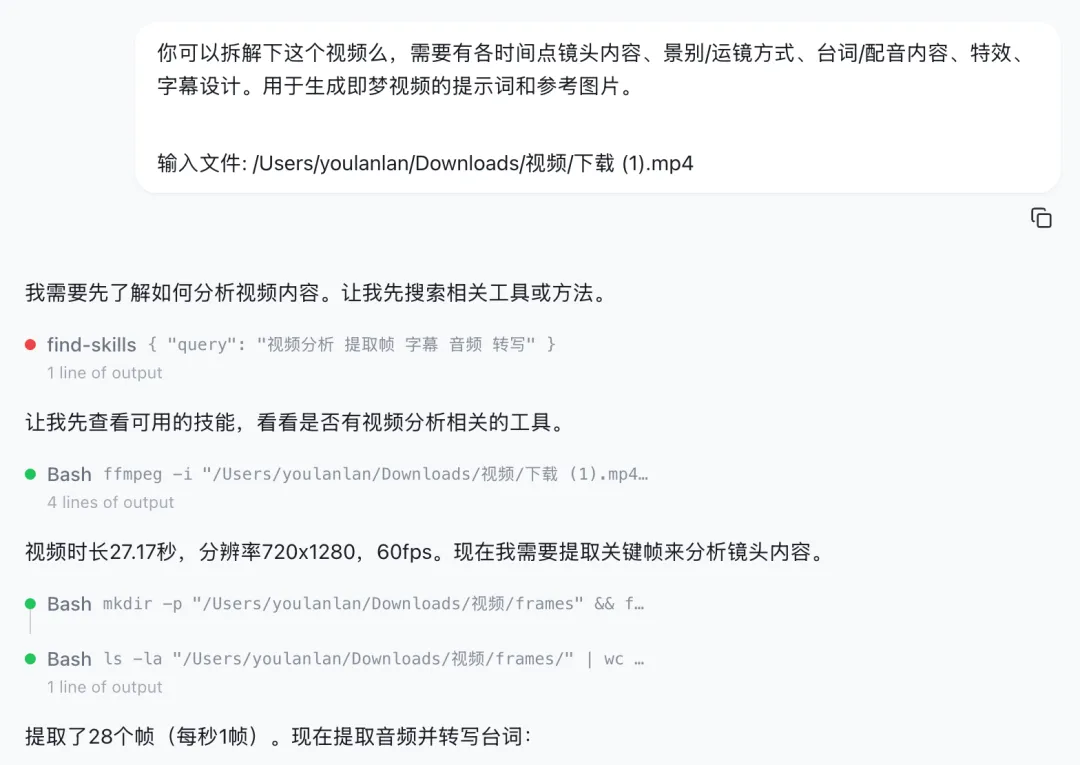 将下载的参考视频发给 OpenClaw,推荐使用 豆包2.0大模型 进行视频拆解(毕竟字节系大模型更懂短视频内容逻辑,懂得都懂)