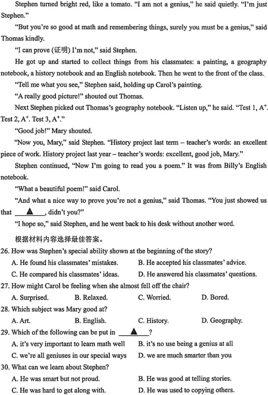 说明:学生答案与所给答案不一致的,不给分;单词拼写如有大小写错误,建议不扣分。