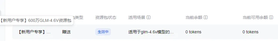 突然想起来,我还有个注册时赠送的资源包没用过。赶紧去查了一下,惊喜地发现我的glm-4.6v模型还有600万Token可用!🎉