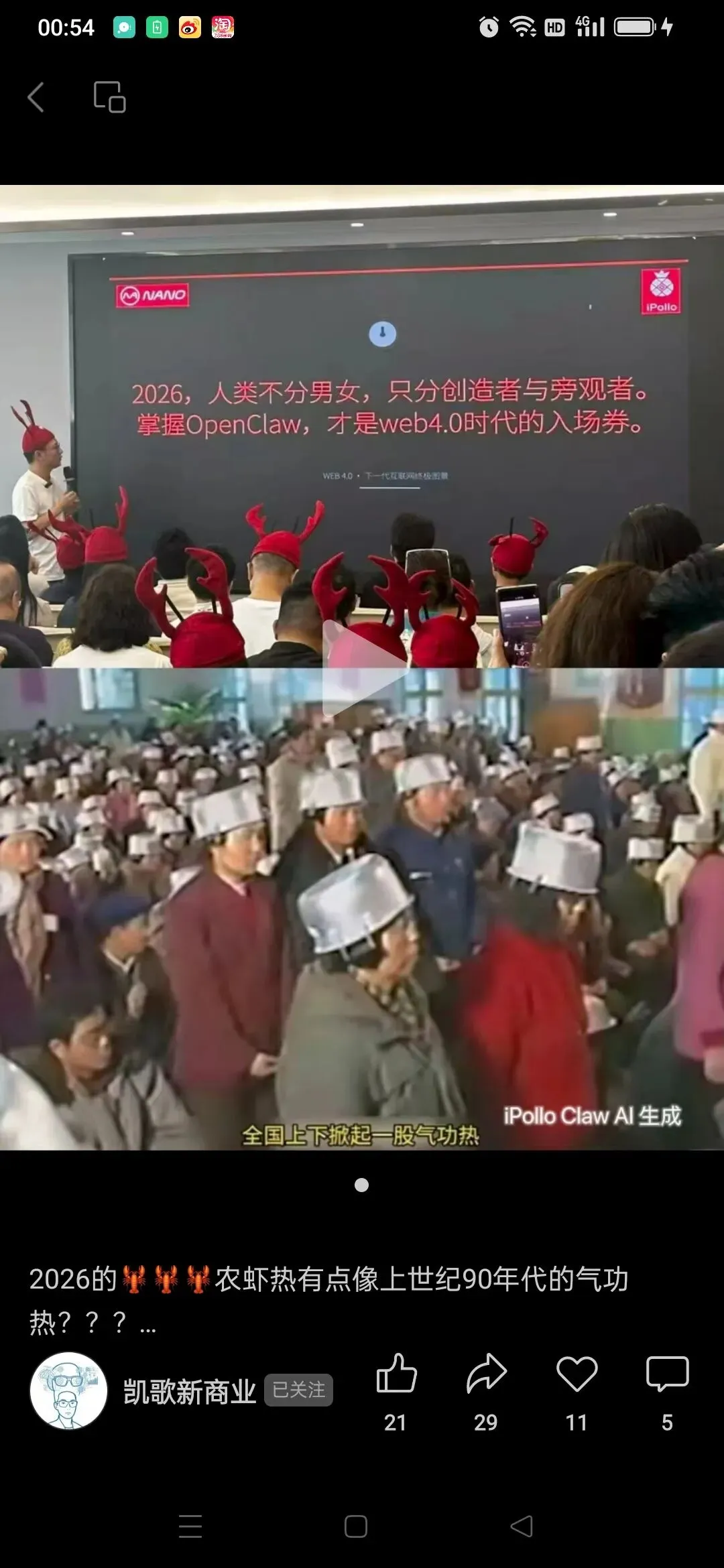 气功热时,一套简单的养生功法被包装成“呼风唤雨”“透视治病”的神功。OpenClaw同样被神化——明明只是一个本地执行框架,却被说成“无所不能的AGI”。