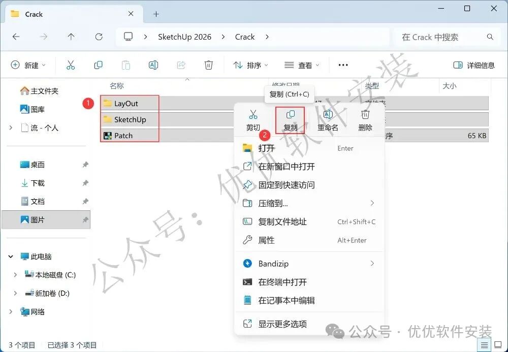 7、回到SketchUp 2026文件夹,找到【Crack】文件夹,右键【打开】它