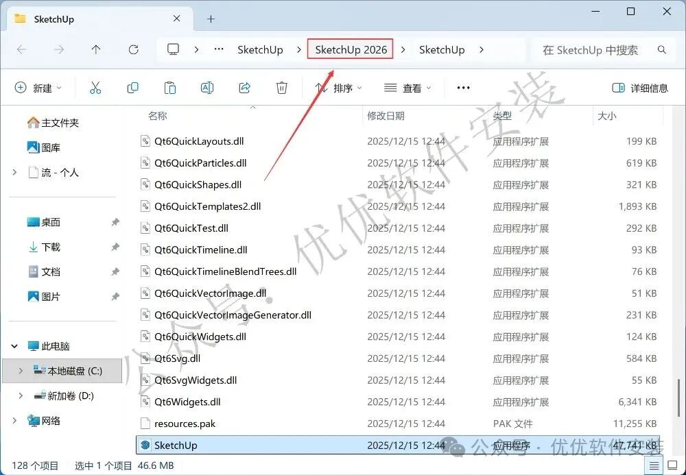 10、点击路径上的【SketchUp 2026】