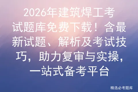 安全生产模拟考试一点通平台发布2026年建筑焊工题库,涵盖考试内容、模拟试题、理论解析及实操视频,提供免费试题、考试总结和报名指南,帮助考生高效备考建筑特殊工种操作证。