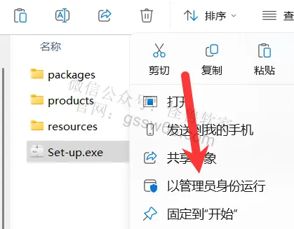 04,找到并选中“Set-up.exe”安装程序,点击鼠标右键,点击“以管理员身份运行”