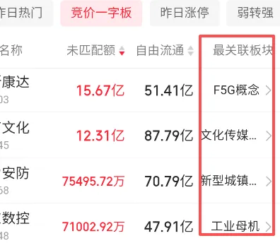 但是,通常情况下一字板的关联板块不抱团。如果不是第一个一字板——首板,其实基本可以忽略。重点看在新冒出来的首个一字板,或许在关联板块可以找到后排的套利机会。前提你是非常熟悉这个板块和人气股,新手建议只看看就好,慢慢熟悉。