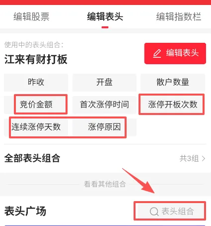 可以点编辑标题进入后加上竞价金额、涨停开板次数。如果觉得麻烦,也可以直接在表头广场搜索江来有财安装我设置好的。就是这么简单!