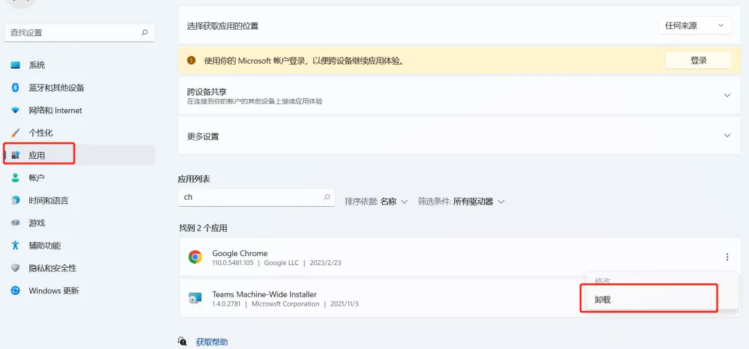 最简单的方法,如果电脑是Win10或者Win11系统,可以直接在“应用设置”中卸载软件。