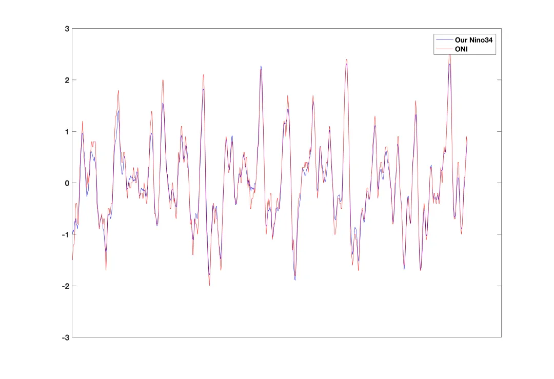 描述: 3个月滑动平均的Niño 3.4区海温异常,最常用的ENSO官方指数