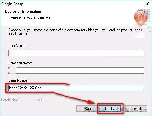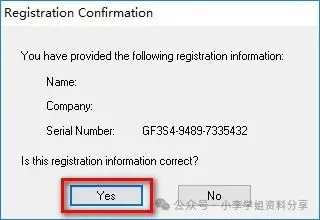 7.用户名和公司名称随笔填写,序列号填:GF3S4-9489-7335432,点击“Next” 8.点击“Yes”