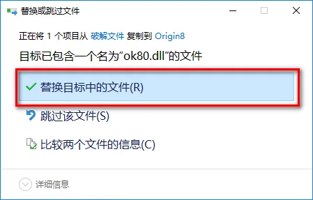 13.点击“Next” 14.点击“Next” ![]() 15.软件正在安装,请耐心等待 ![]() 16.点击“Finish” 17.双击打开【破解文件】文件夹 ![]() 18.将破解文件中的“ok80.dll”复制到软件安装目录下(第九步的路径) ![]() 19.点击“替换目标中的文件” ![]() 20.将破解文件中的“orglab.lic”复制到软件安装目录(第九步的路径)下的FLEXlm文件夹里面 ![]() 21.在开始菜单,找到并打开软件