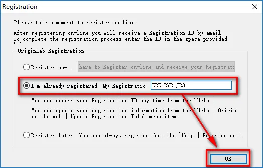 22.点击“OK” ![]() 23.点击“Continue” . 24.输入注册号码:KRK-RYR-JR3,点击“OK” ![]() 25.取消勾选,点击“OK”,关闭软件 ![]() 26.将破解文件中的“Origin8.exe”复制到软件安装目录下替换原文件(第九步的路径) ![]() 27.点击“替换目标中的文件” ![]() 28.安装结束 ![]() |