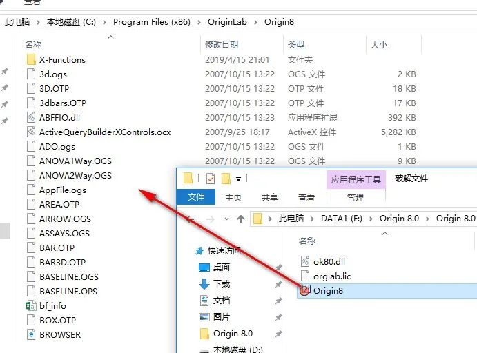 1.鼠标右键解压到“Origin 8.0”
