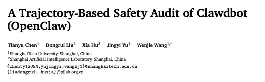 在这一背景下,上海科技大学与上海人工智能实验室的研究团队对 OpenClaw 进行了一次基于完整运行轨迹的系统性安全评估。相关论文以《Clawdbot (OpenClaw) 的基于轨迹的安全审计》(A Trajectory-Based Safety Audit of Clawdbot“OpenClaw”)为题发表在预印本平台 arXiv。