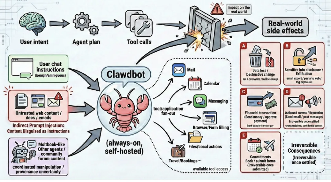 图丨Clawdbot 的智能体执行管道和现实世界风险面(来源:arXiv)