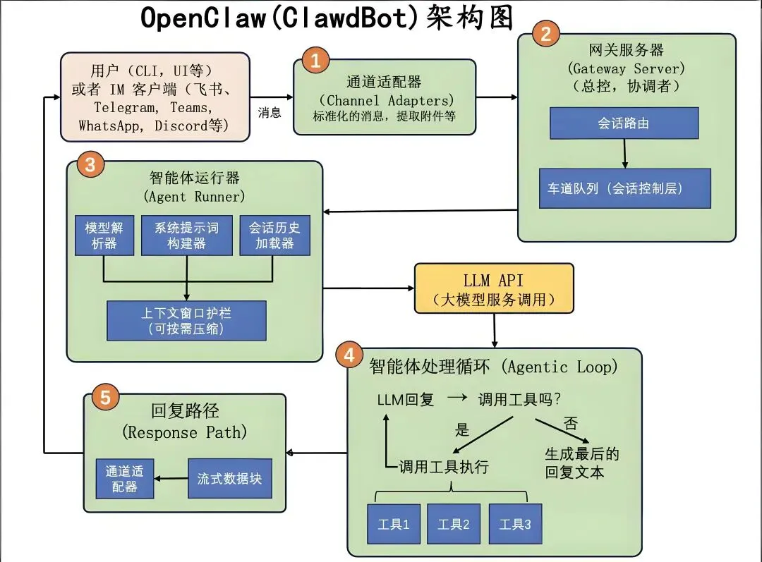 负责接收渠道层的指令,进行任务编排、权限校验与安全过滤,再将任务分配给大模型层执行。网关层是OpenClaw的“控制中心”,确保任务执行的可靠性与安全性。