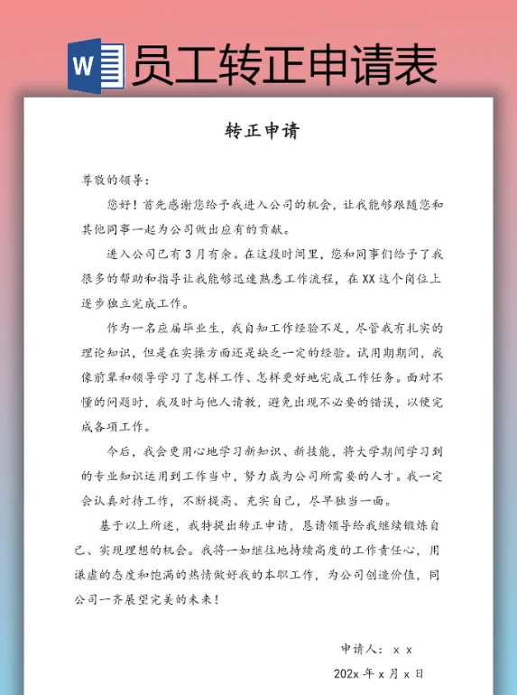 【2026】员工转正申请书模板(word电子版可编辑)【免费保存下载】本文内容分享【2026】员工转正申请书模板👇网盘打包下载👇https://pan.quark.cn/s/3d872a500340#职工转正申请书模板 #转正申请书的模板以下是部分预览图展示以上仅为部分预览图点击左下方“阅读原文”,获取完整版