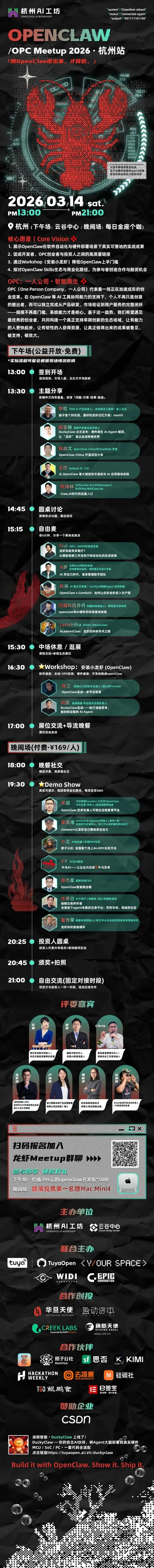3.14 杭州 | OpenClaw & OPC Meetup:共探AI基建与应用新机遇
