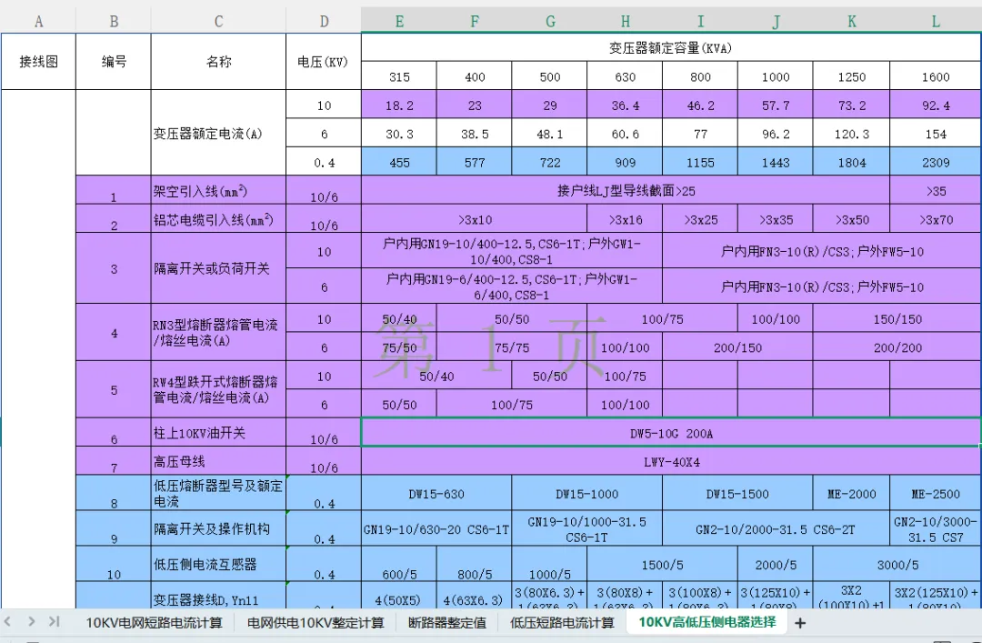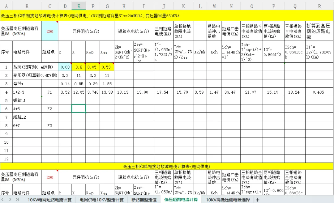 【免费下载】无保护破解版,10kV系统短路电流整定计算表格(收藏一份)