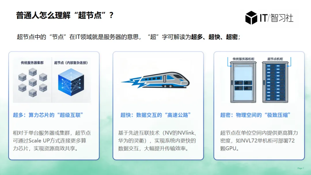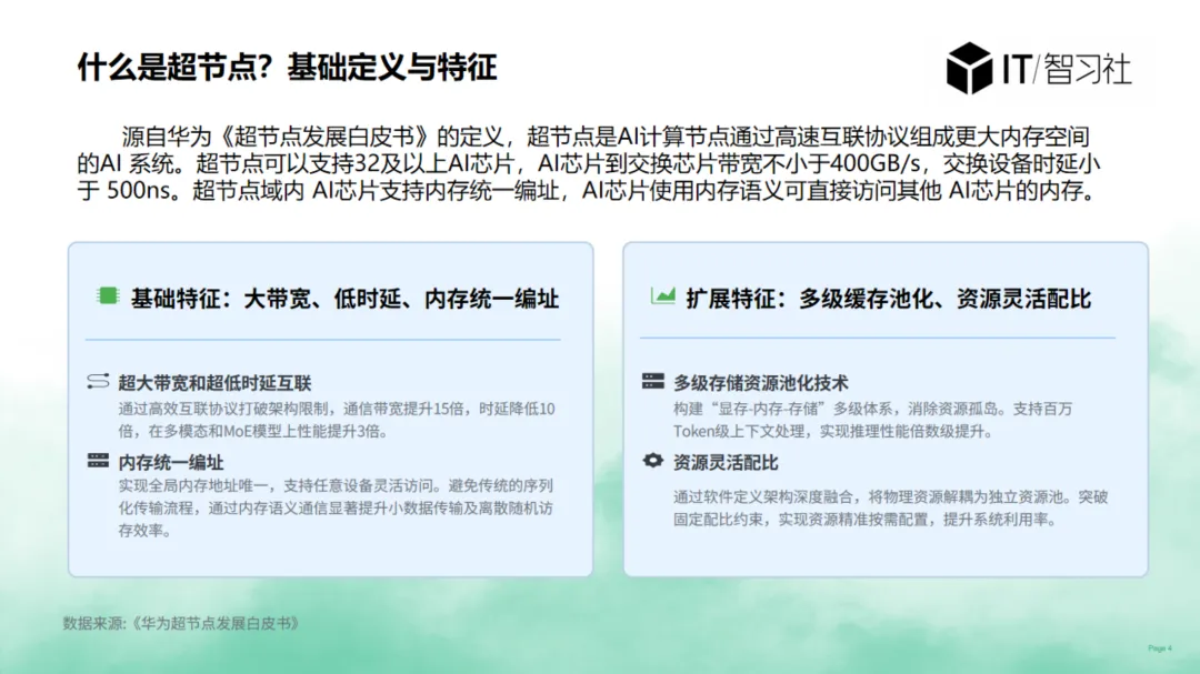 - 传统超节点:集中式算力集群,负责大模型训练 / 推理,是算力提供者。