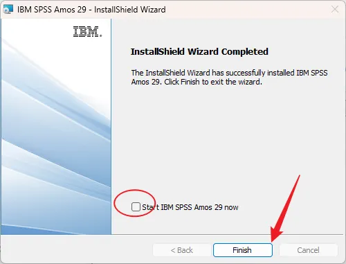 10.取消勾选【Start IBM SPSS……】,点击【Finish】。
