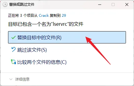 16.点击【替换目标中的文件】。