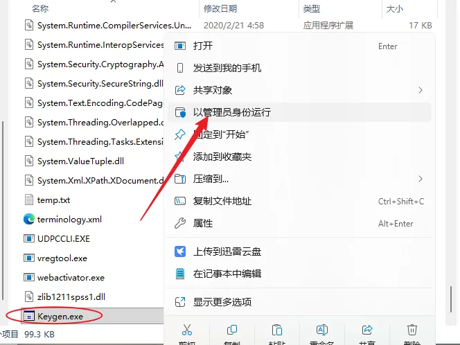 17.鼠标右击粘贴后的【Keygen】选择【以管理员身份运行】。