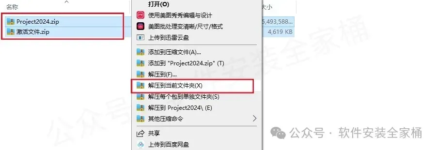 1.打开下载的软件安装包,然后鼠标右击压缩包,选择【解压到当前文件夹】。