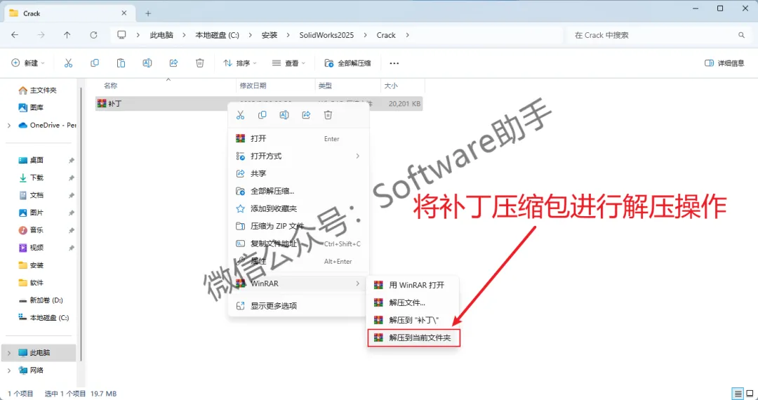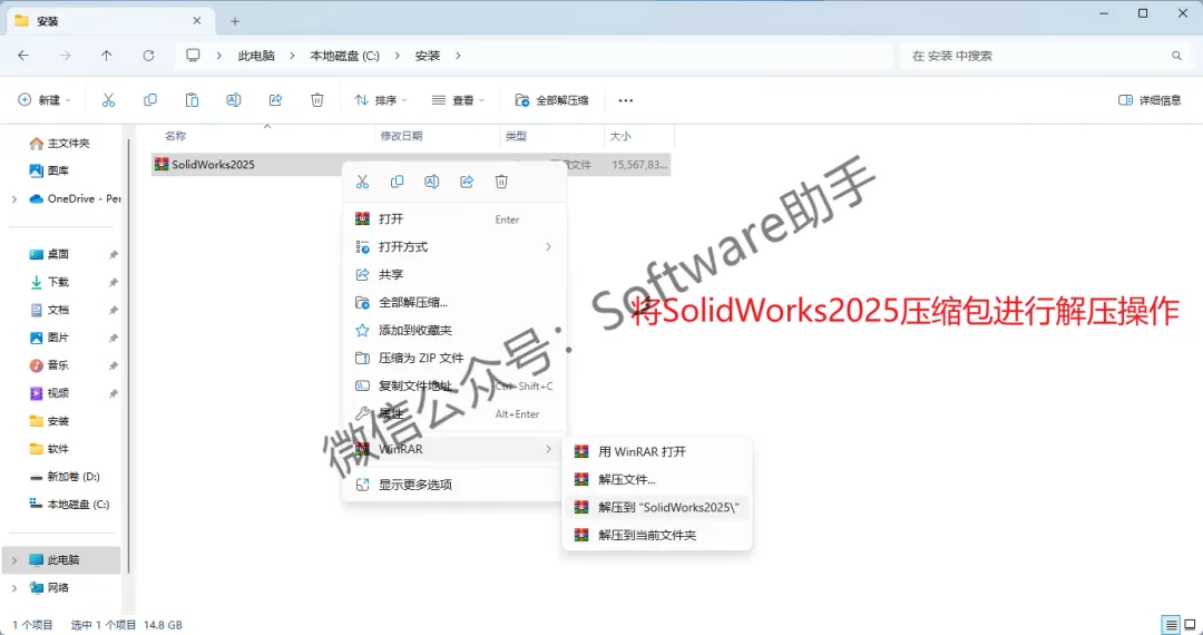 1.鼠标右击【SolidWorks2025】压缩包,将它解压