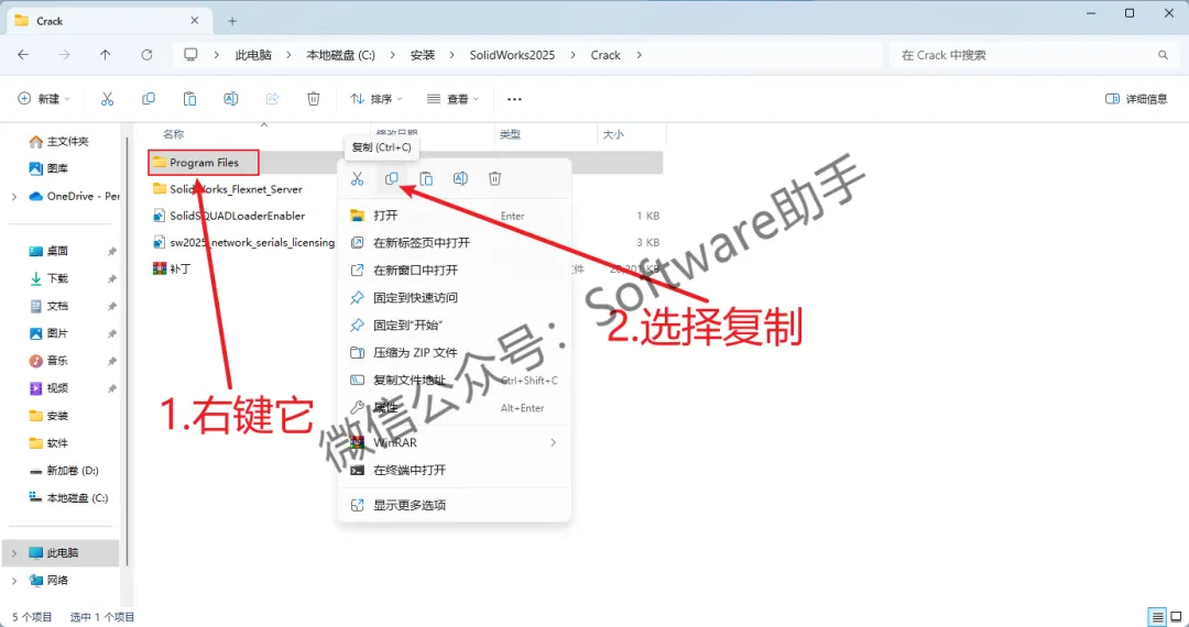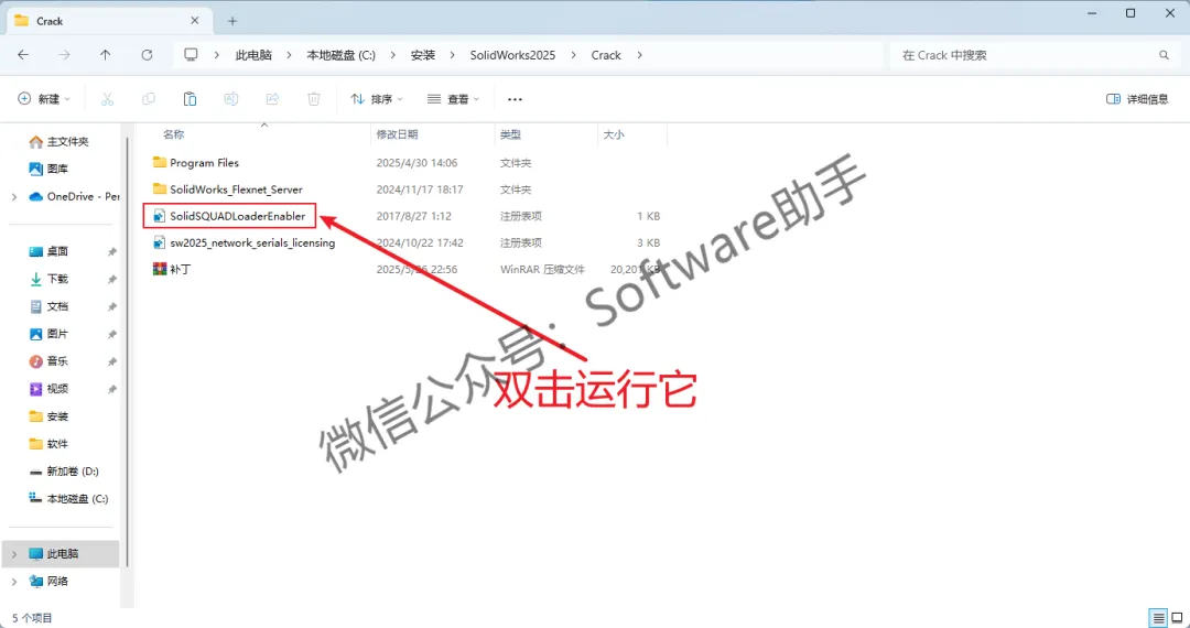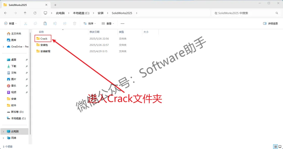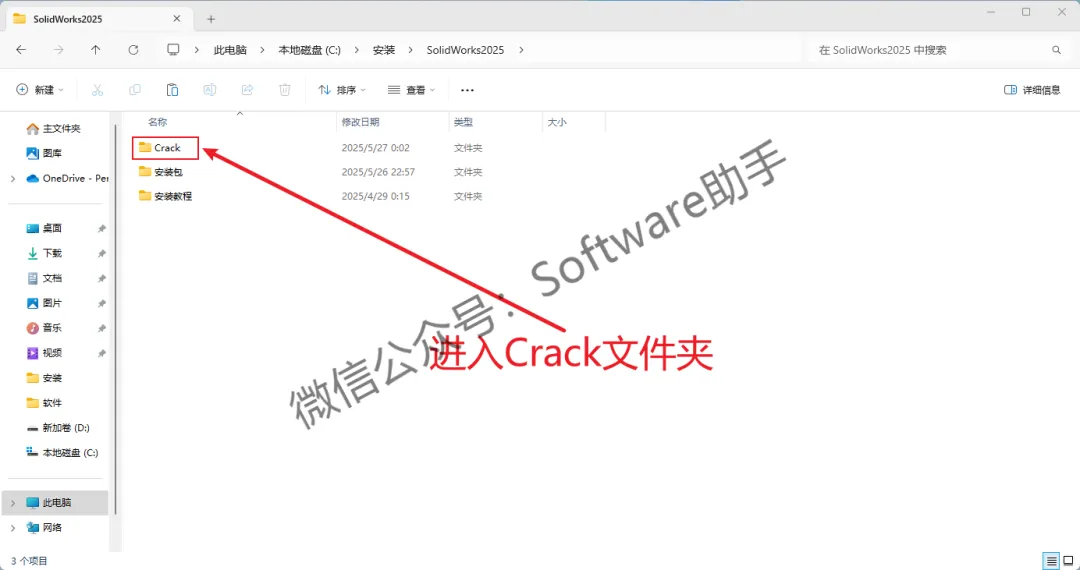 25.回退到【SolidWorks2025】文件夹,再进入【Crack】文件夹