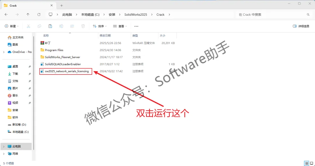 4.双击运行【sw2025_network_serials_licensing】