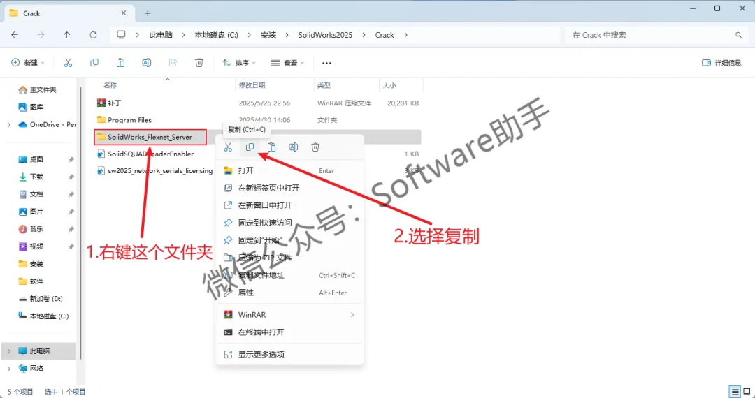 7.鼠标右键【SolidWorks_Flexnet_Server】文件夹,选择【复制】