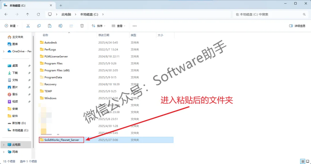 9.进入粘贴后的【SolidWorks_Flexnet_Server】文件夹