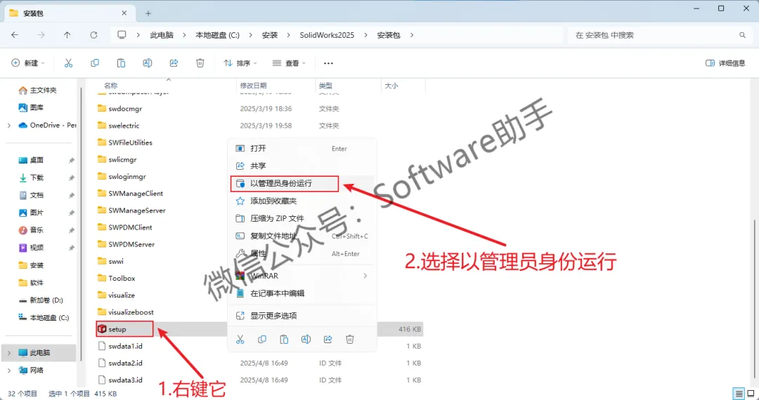 13.鼠标右键【setup】,选择【以管理员身份运行】