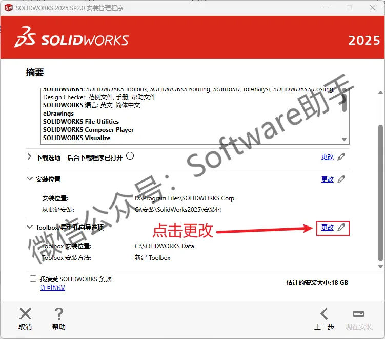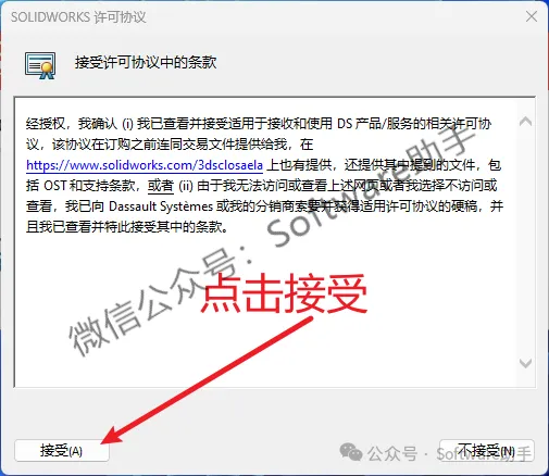 21.先勾选【我接受 SOLIDWORKS 条款】,再点击【现在安装】