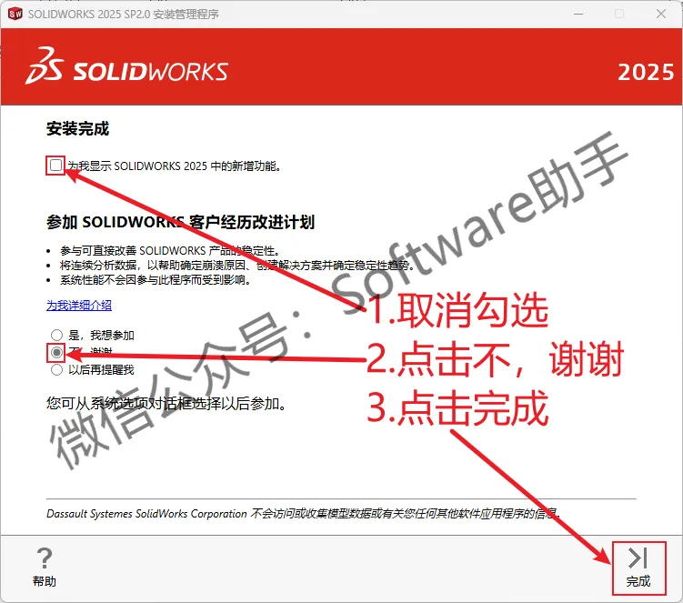 24.①取消勾选【为我显示……】 ②选择【不,谢谢】 ③点击【完成】