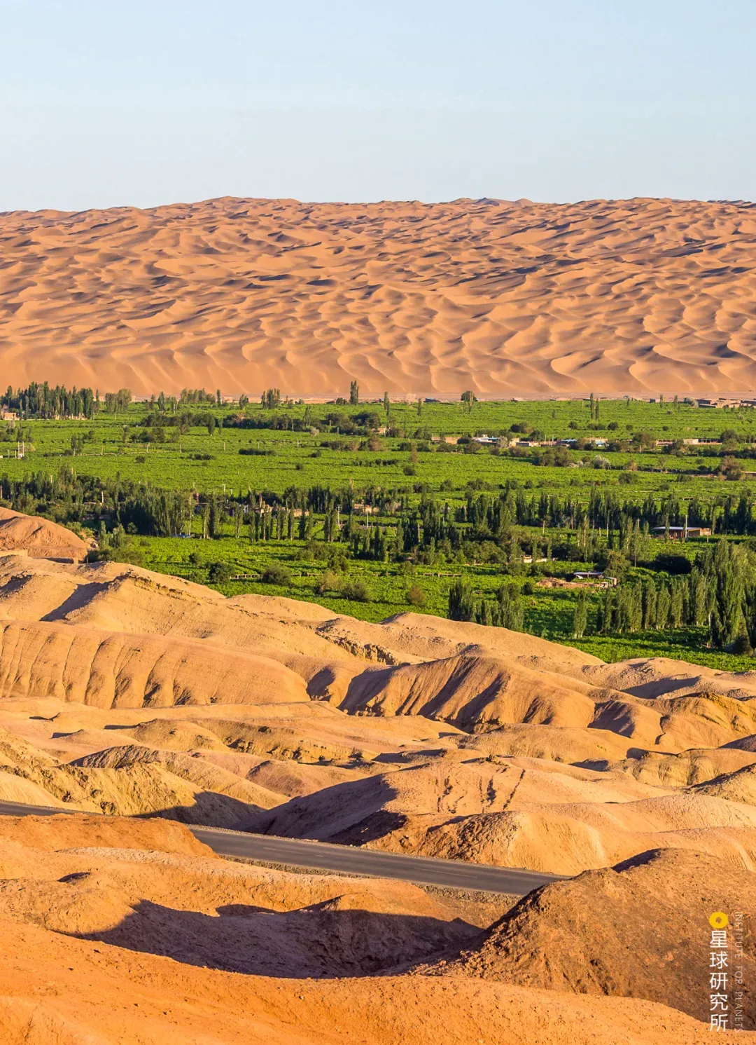 此外还有生产木材的用材林(请横屏观看,新疆阿克苏地区温宿县柯柯牙,集生态林、经济林和防风林于一体的人工林,图片来源@视觉中国)