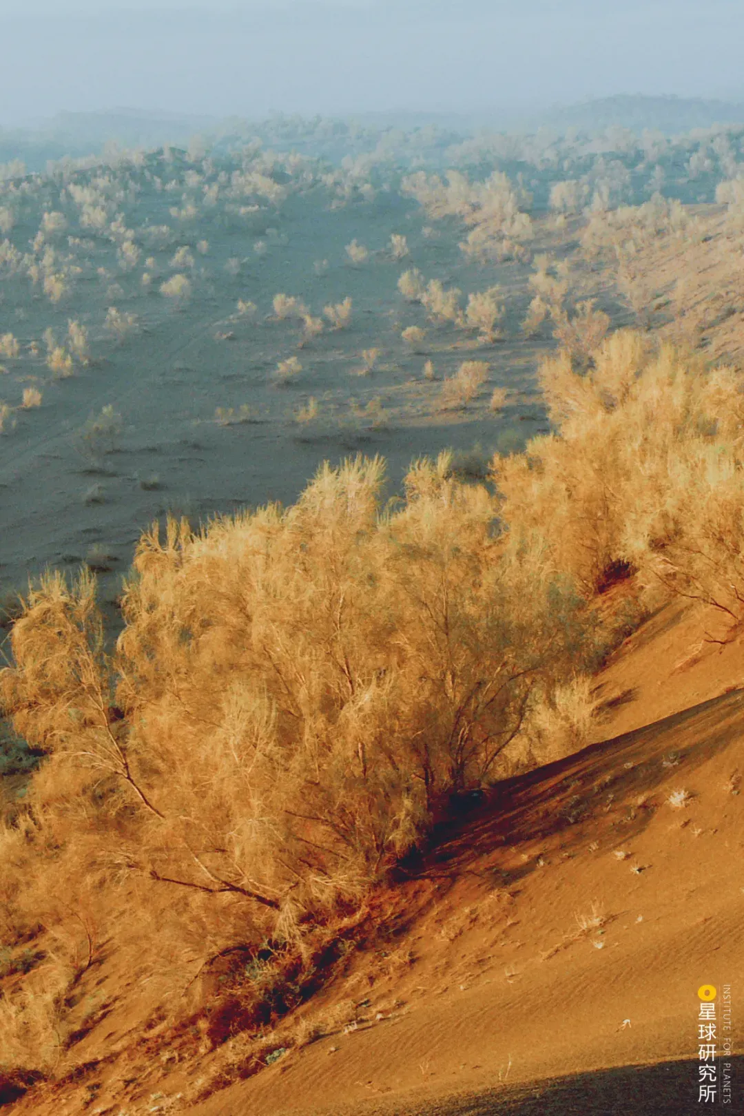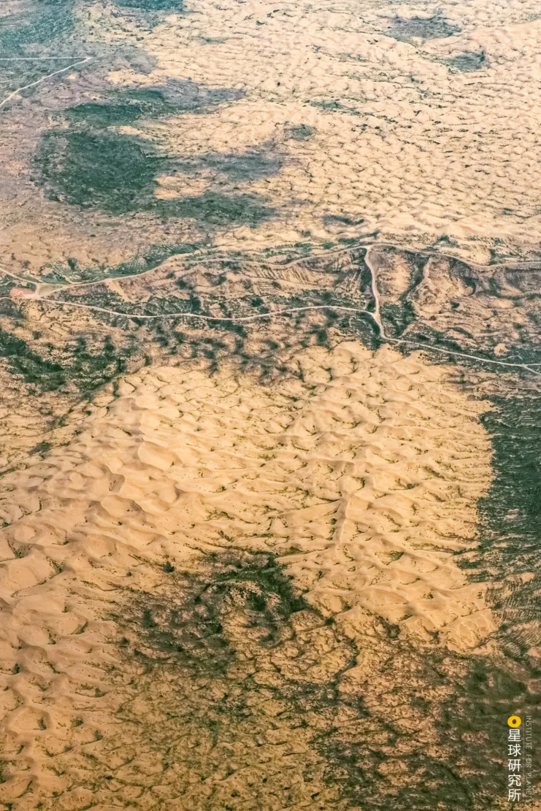(请横屏观看,内蒙古乌审旗萨拉乌苏遗址,毛乌素沙地造林,摄影师@朱金华)