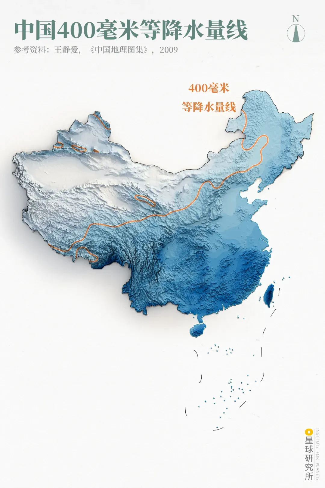 (400毫米等降水量线,制图@巩向杰/星球研究所)