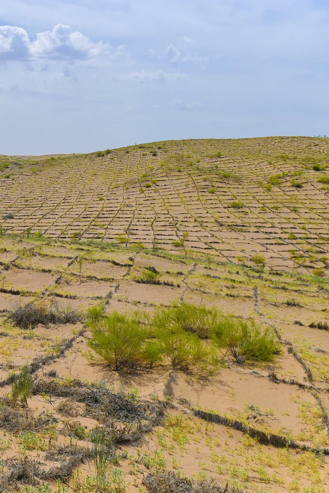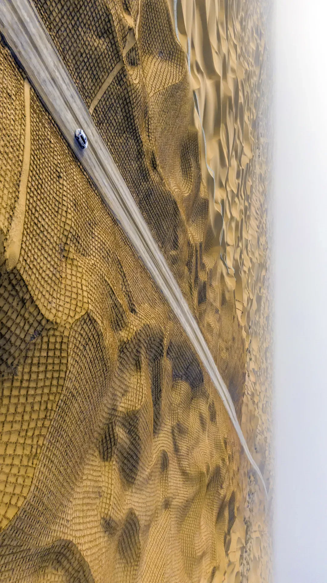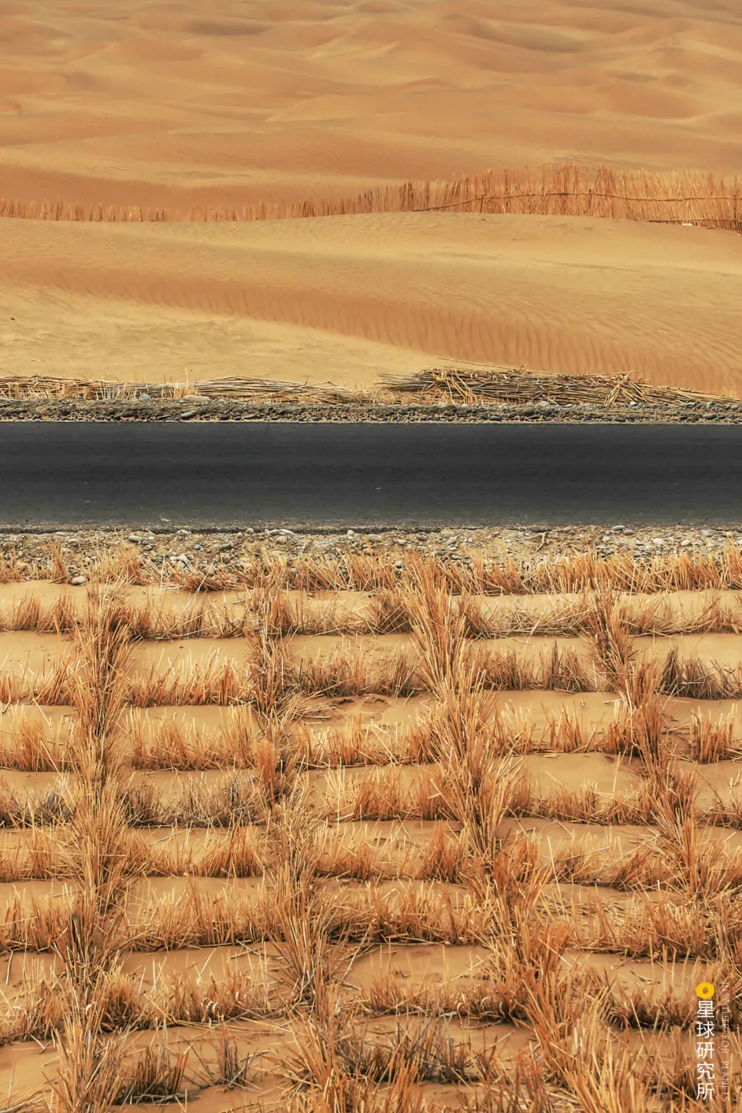 (塔克拉玛干-达里雅布依沙漠公路两旁的草方格,摄影师@小强先森)