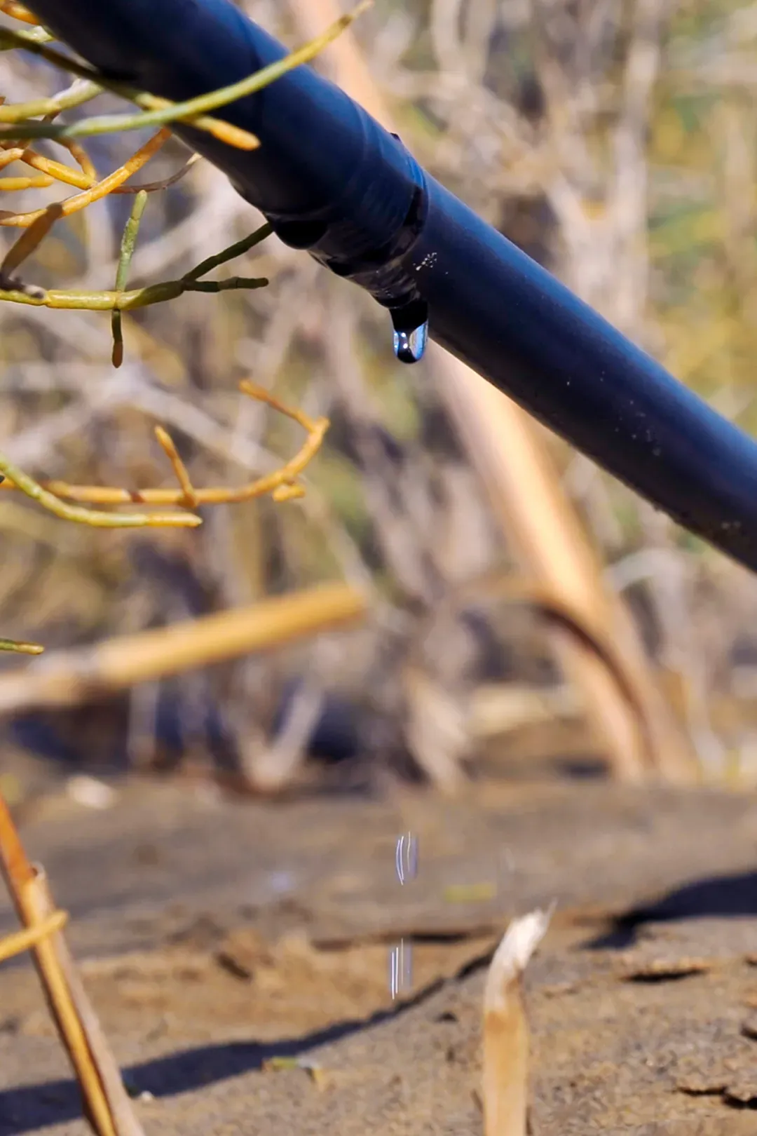 (新疆巴音郭楞蒙古自治州且末县沙漠植被滴灌,图片来源@视觉中国)