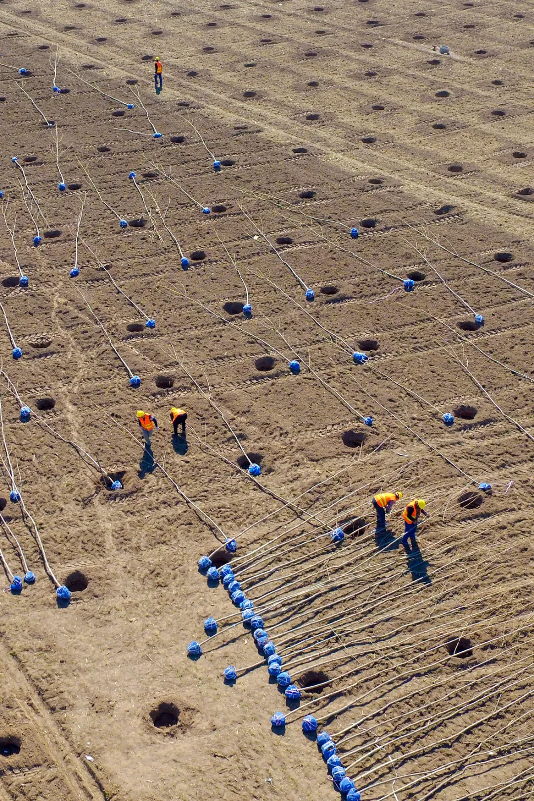 (30年前,年过六旬的江苏省徐州市铜山区伊庄镇吕梁村农民刘开田签下承包荒山徐山100年的合同,从此便带着儿子刘继忠在山上挖坑植树、管树,图片来源@视觉中国)(2020年8月11日,专业植树队员在山东省青州市王府街道青龙山上挑运树苗,图片来源@视觉中国)(2018年8月4日,河北张家口,万全区红旗沟村植树造林的农民们将树苗通过人力的方式将其背到山上,图片来源@视觉中国)(2016年3月2日,安徽省含山县陶厂镇,易厚掌挑上不易着火起隔离作用的枫香树到山上种植,图片来源@视觉中国)