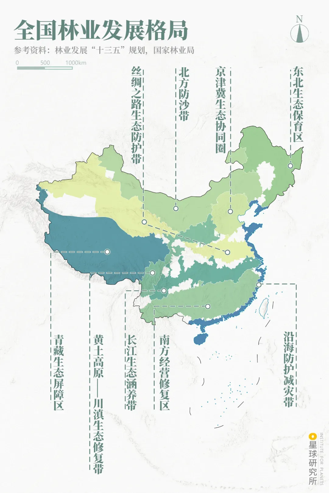 (2021-2035林业生态工程发展格局,制图@巩向杰/星球研究所)