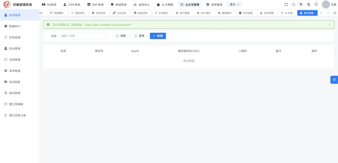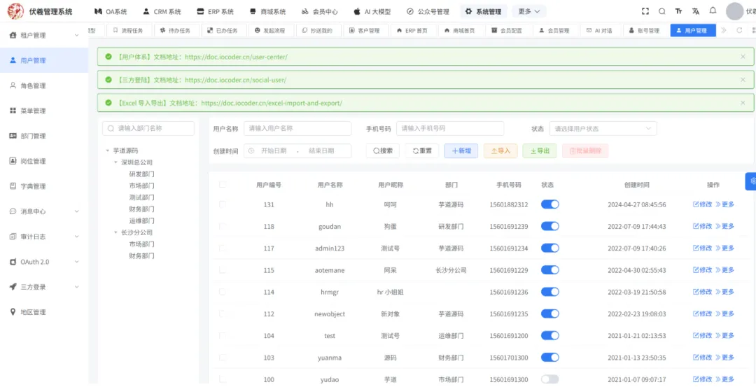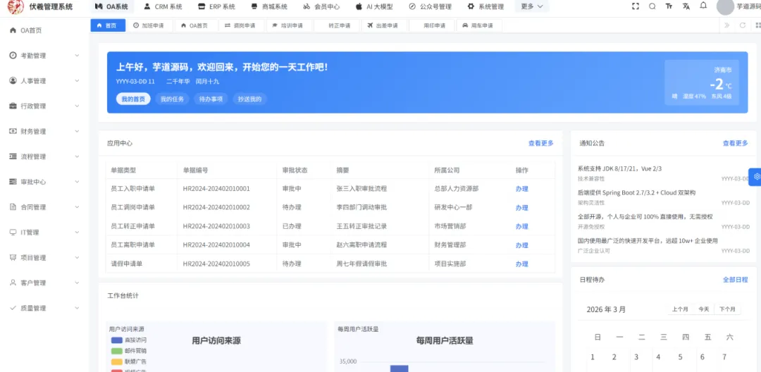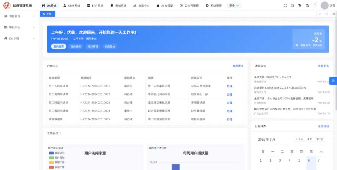 传统企业 OA、CRM、ERP 各自为战?系统集成成本高?开发周期长,定制化难?这款开源 Deep Office Pro(伏羲管理系统)颠覆认知!基于伏羲系统改造的一站式企业级解决方案,系统管理、工作流、商城、CRM、ERP、微信公众号 全集成,前后端分离 + 代码生成器 + Docker 一键部署,开箱即用,市场需求巨大,可直接商业化落地!