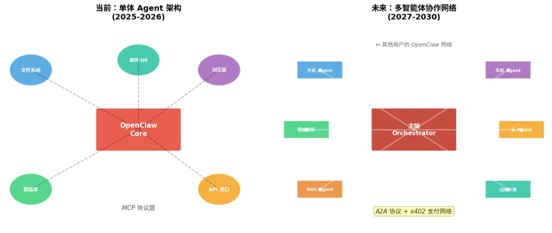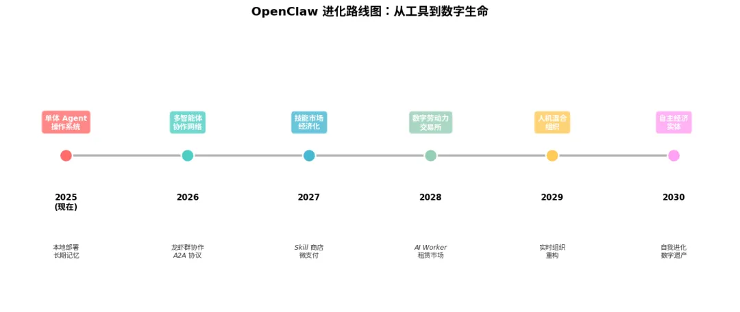 OpenClaw 从 2025 到 2030 的完整进化路径,从单体工具进化为自主经济实体