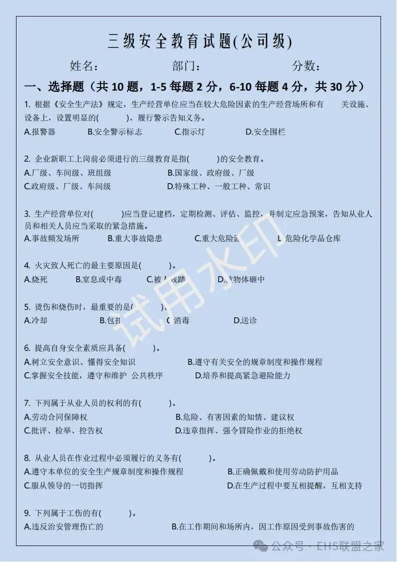二、部门/车间级安全培训