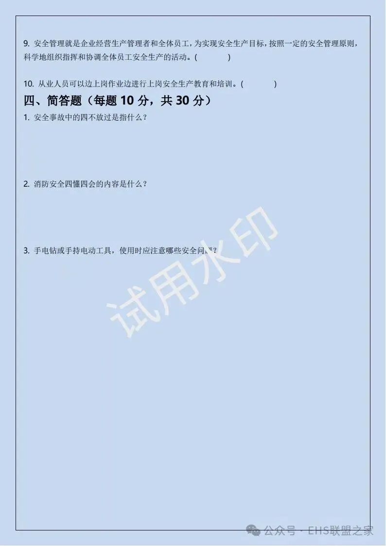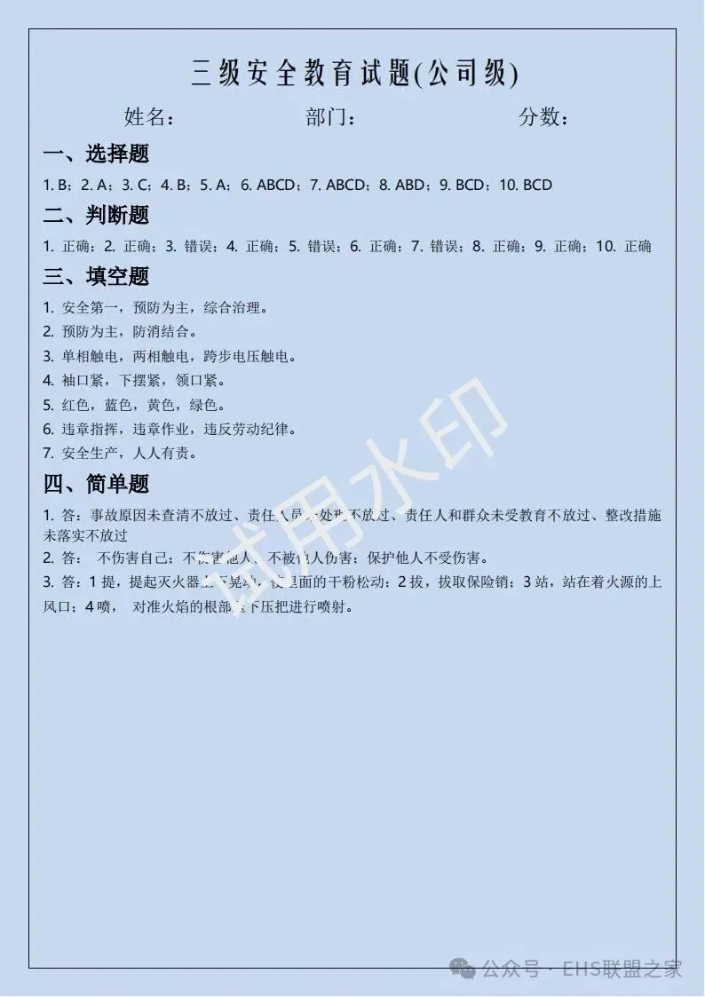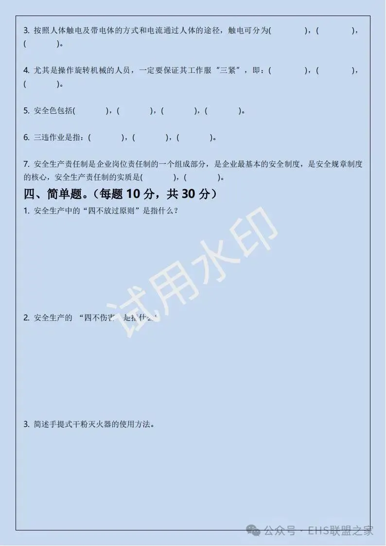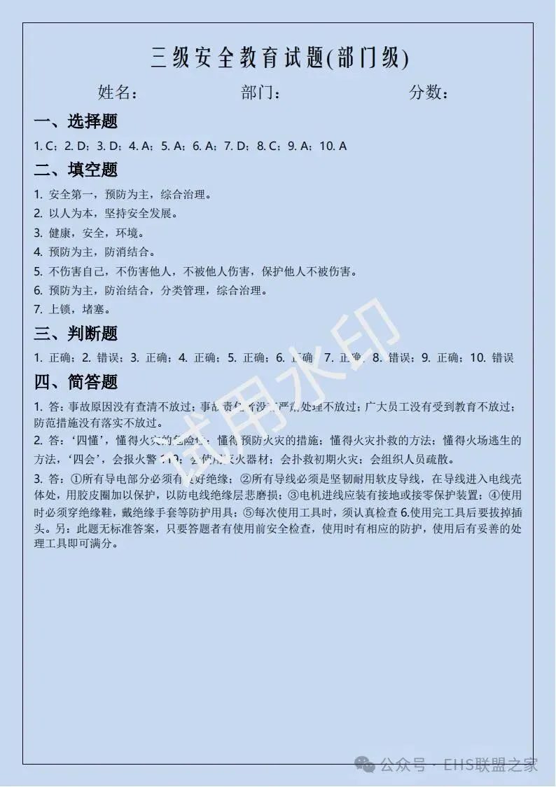 四、三级安全培训考试卷(含答案)