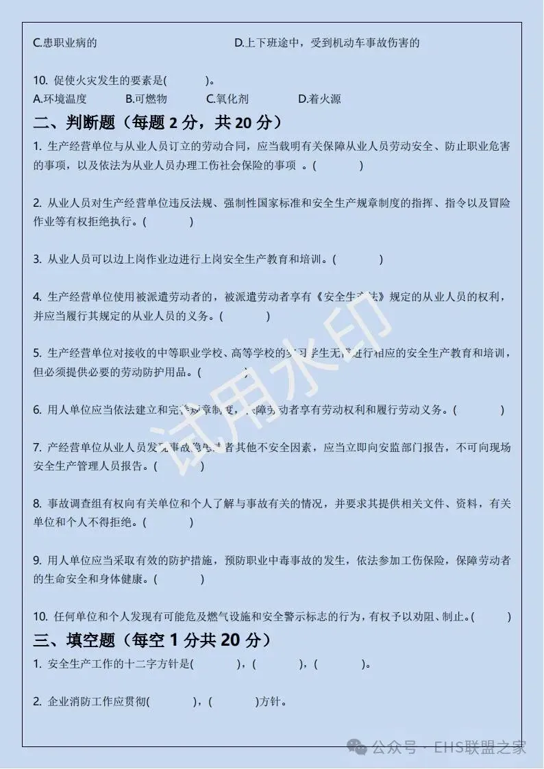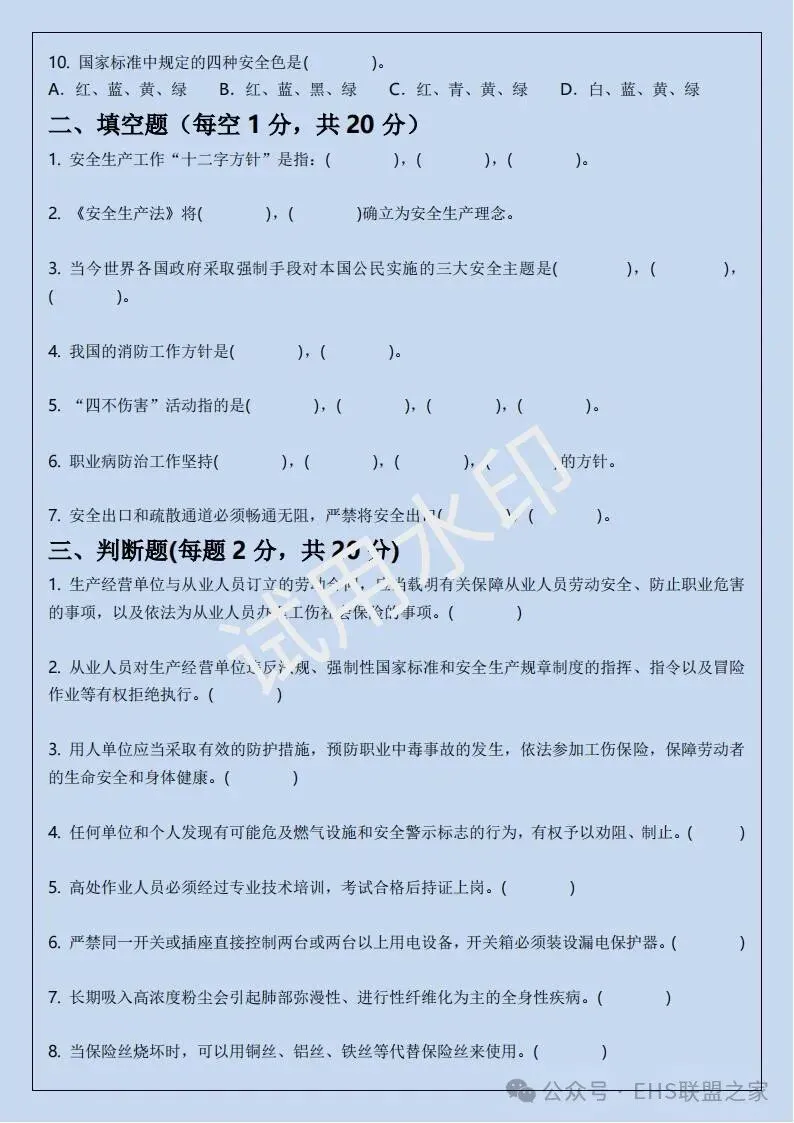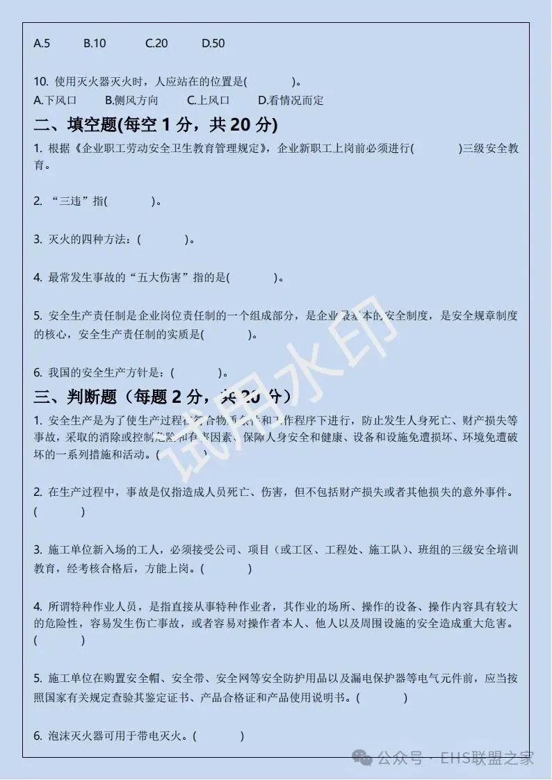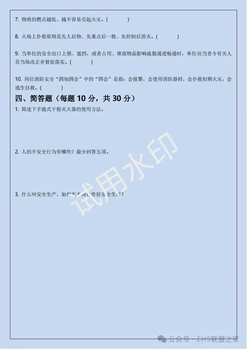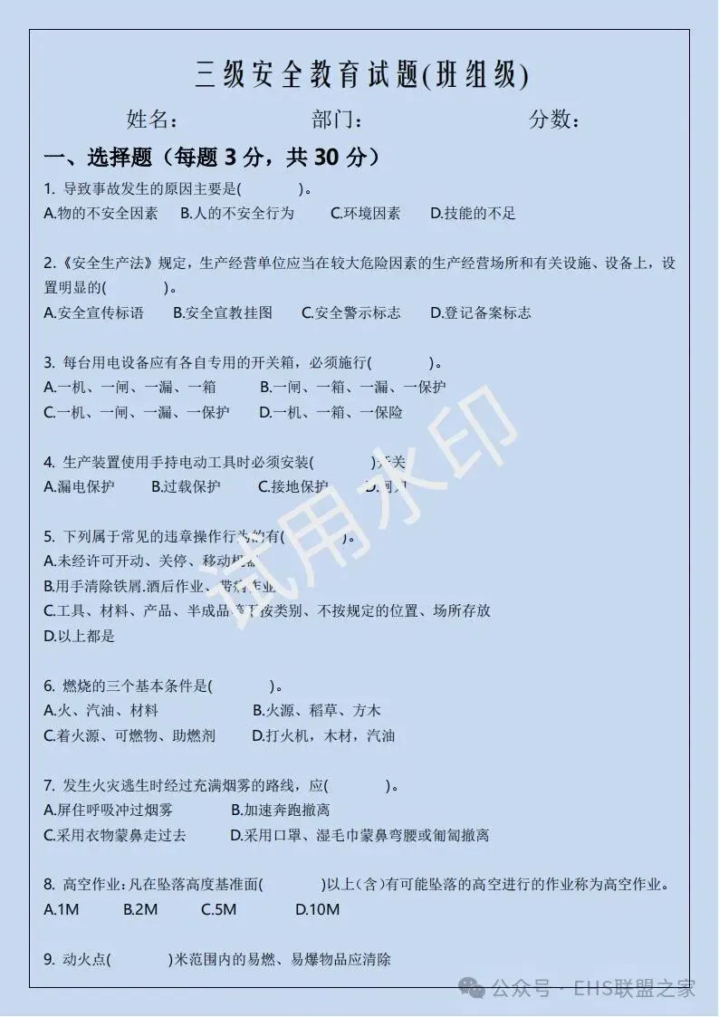 四、三级安全培训考试卷(含答案)