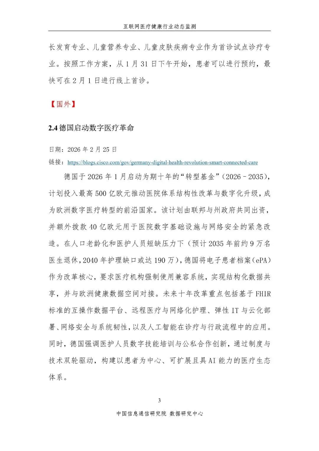2月3日,2026年全国卫生健康规划信息工作会议在京召开。国家卫生健康委党组成员、副主任郭燕红出席会议并讲话。会义要求,2026年要深入贯彻落实党中央、国务院决策部署,全面推进实施健康优先发展战略,编制实施好卫生健康领域"十五五"规划,科学确定医疗卫生资源配置标准,完善卫生健康服务体系建设,深化数智健康服务应用,深入开展爱国卫生运动和健康中国行动,推动自康中国建设取得新成效。