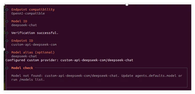 OpenClaw 本身不包含 AI 模型,你需要配置一个模型提供方。这里我选择的是 DeepSeek,因为它的 API 价格实惠,而且支持思考模式。